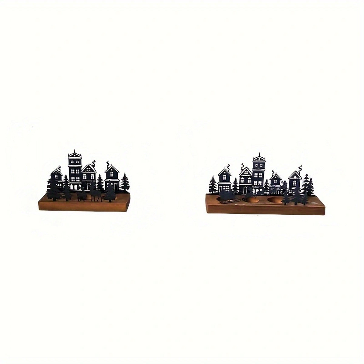 Wrought Iron Christmas Tree Candle Stick Wooden Base Candle Holder